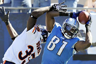 The Lions’ Calvin Johnson catches a pass in Sunday’s game against the Chicago Bears (Photo: AP/Charles Rex Arbogast/ESPNChicago.com)